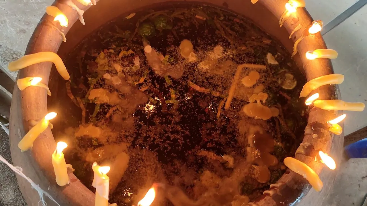 ขณะเดียวกัน หลังเสร็จสิ้นพิธีโบราณอันศักดิ์สิทธิ์ ผู้ที่มาร่วมในงานต่างไม่พลาด เมื่อมีคอหวยตาดีสังเกตเห็นหยดน้ำตาเทียนในโอ่งน้ำมนต์ ปรากฏตัวเลขลอยเด่นชัด โดยมองเห็นเป็นตัวเลขหลายตัว เมื่อชาวบ้านทราบดังนั้น ต่างพากันฮือฮาและเข้ามาส่องดูตัวเลข ต่างก็ไม่ผิดหวังพร้อมนำโทรศัพท์มือถือมาถ่ายรูป ส่งต่อให้กันอย่างคึกคัก บางคนเห็นเป็นเลข 43, 79, 32 ส่วนบางคนก็ไม่เห็นแล้วแต่โชคใครโชคมัน.